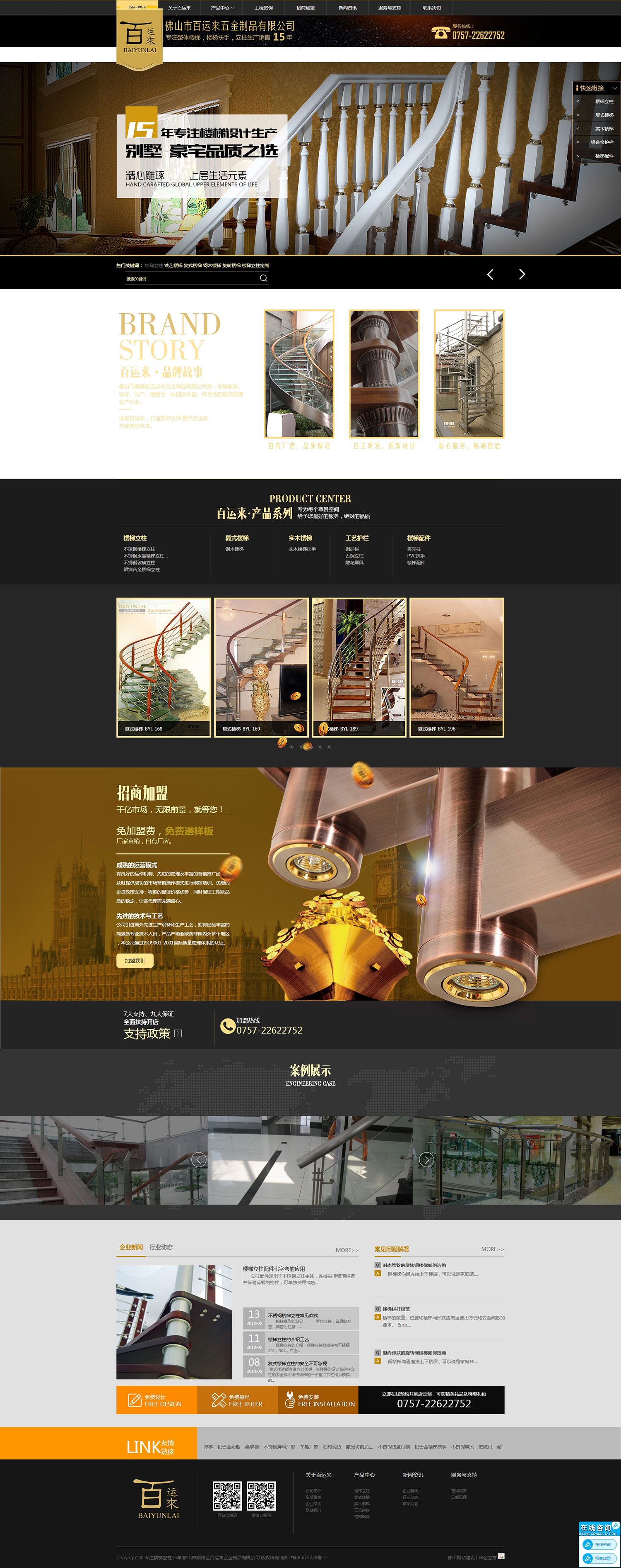 公司自主研發生產,銷售成品樓梯、樓梯扶手、樓梯立柱、鋼木樓梯、旋轉樓梯、銅立柱、銅樓梯、銅護欄、銅扶手、不銹鋼立柱、不銹鋼夾木立柱、鋁鎂立柱、玻璃扶手、自推向市場以來,深受消費者和經銷商的一致好評。