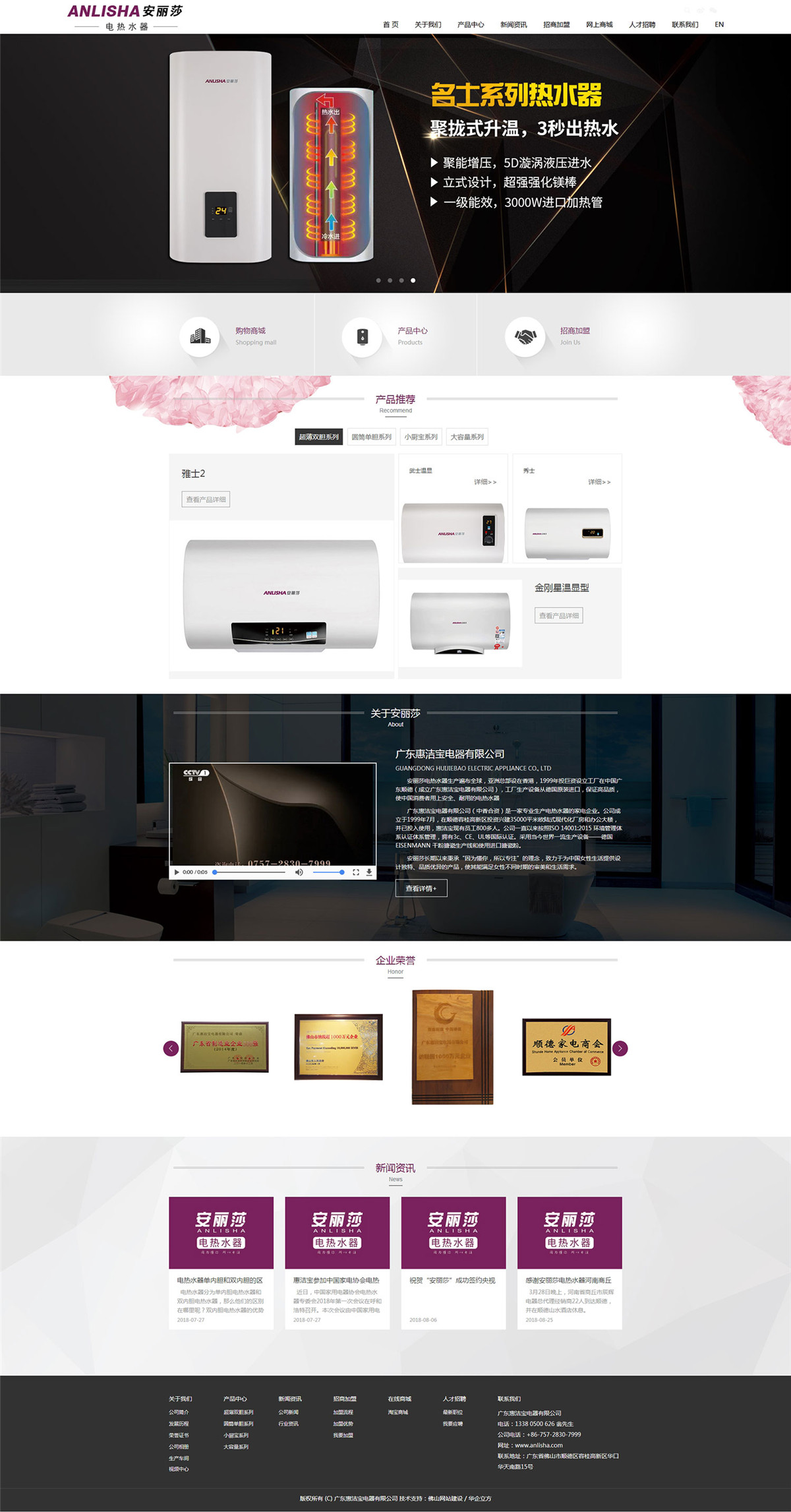 安麗莎電熱水器生產廠家遍布全球,亞洲總部設在香港,1999年投巨資設立工廠在中國廣東順德(成立廣東惠潔寶電器有限公司),工廠生產設備從德國原裝進口,保證高端品質,使中國消費者用上安全耐用的電熱水器。
