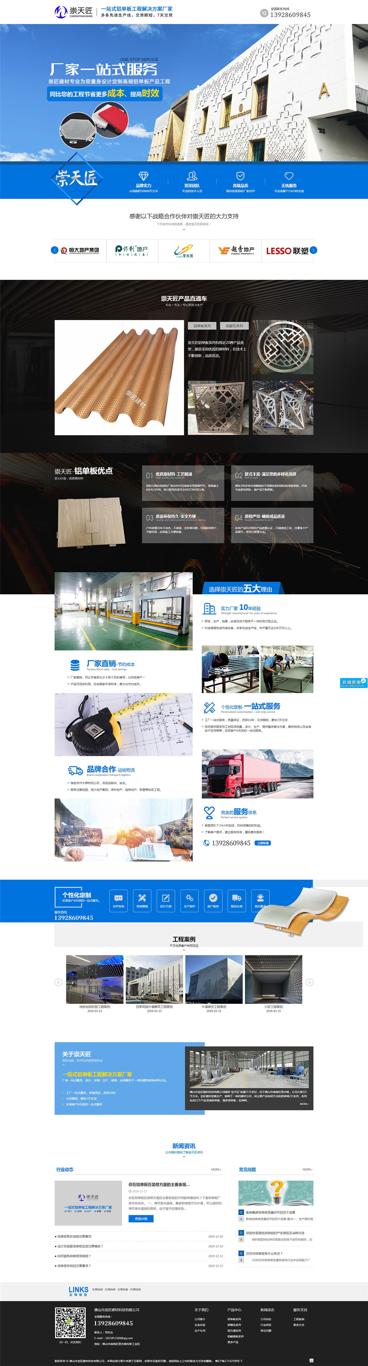佛山市崇匠建材科技有限公司簡(jiǎn)稱(chēng)"崇天匠"始建于21世紀(jì),位于佛山市南海區(qū)里水鎮(zhèn),公司占地5萬(wàn)平方米。崇匠建材是集生產(chǎn)、銷(xiāo)售于一體的建材公司,其主要產(chǎn)品有鋁天花和鋁幕墻2大系列,系列包含以下產(chǎn)品:雙曲鋁單板、弧形鋁單板,拉伸網(wǎng)、鋁方通,鋁掛片,鋁方通、鋁條扣,鋁扣板,鋁蜂窩,鋁格柵;憑借一流的設(shè)備,卓越的品質(zhì)和優(yōu)質(zhì)的服務(wù)及產(chǎn)品質(zhì)量的保障,崇匠建材產(chǎn)品深受全國(guó)消費(fèi)者的信賴(lài),產(chǎn)品暢銷(xiāo)國(guó)內(nèi)外,東南亞,中東,歐美,全球,業(yè)務(wù)。