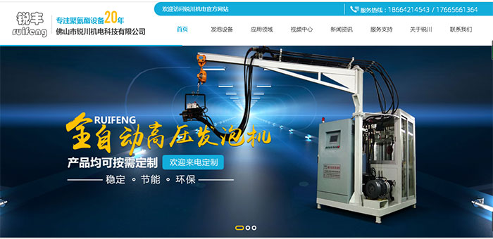 高壓發泡機行業網站建設案例展示之佛山市銳川機電科技有限公司
