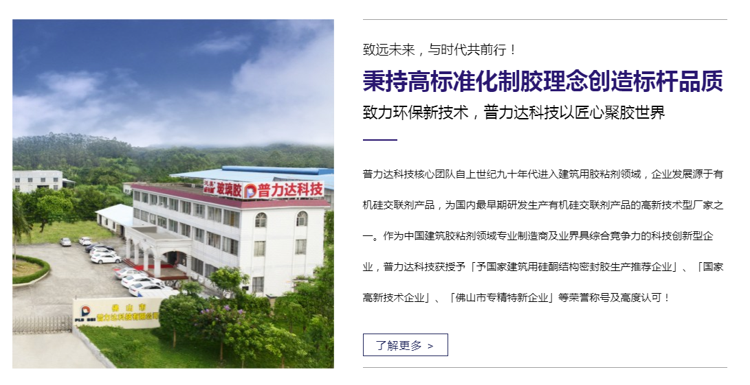 普力達(dá)科技核心團(tuán)隊(duì)自上世紀(jì)九十年代進(jìn)入建筑用膠粘劑領(lǐng)域,企業(yè)發(fā)展源于有機(jī)硅交聯(lián)劑產(chǎn)品,為國內(nèi)早期研發(fā)生產(chǎn)有機(jī)硅交聯(lián)劑產(chǎn)品的高新技術(shù)型廠家之一。作為建筑膠粘劑領(lǐng)域?qū)I(yè)制造商及業(yè)界具綜合競爭力的科技創(chuàng)新型企業(yè),普力達(dá)科技獲授予「予國家建筑用硅酮結(jié)構(gòu)密封膠生產(chǎn)推薦企業(yè)」、「國家高新技術(shù)企業(yè)」、「佛山市專精特新企業(yè)」等榮譽(yù)稱號(hào)及高度認(rèn)可!