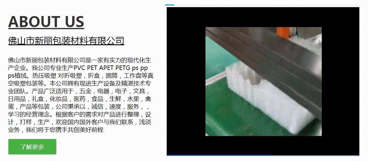 今天來分享一個熱壓吸塑網站設計案例——佛山市新麗包裝材料有限公司