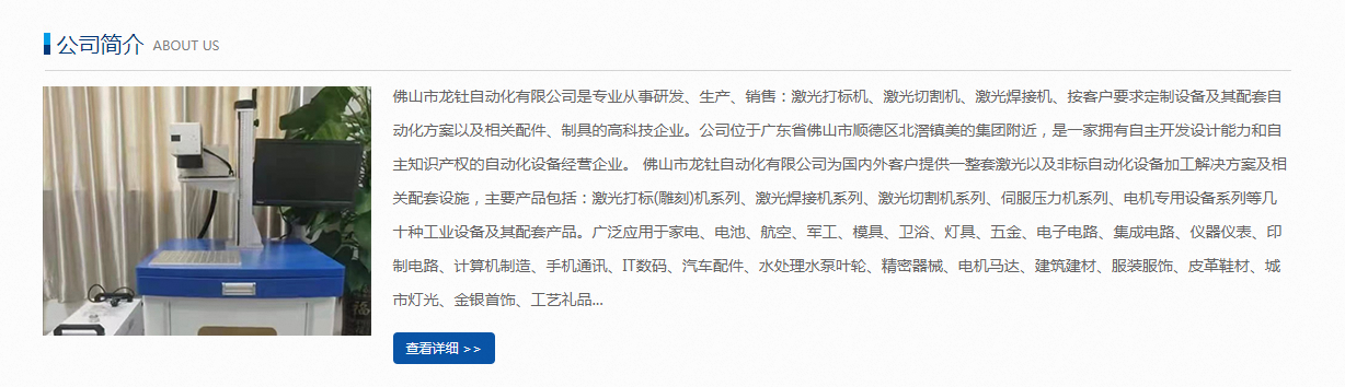 今天來(lái)分享一個(gè)激光打標(biāo)機(jī)網(wǎng)站設(shè)計(jì)案例分享之佛山市龍釷自動(dòng)化有限公司