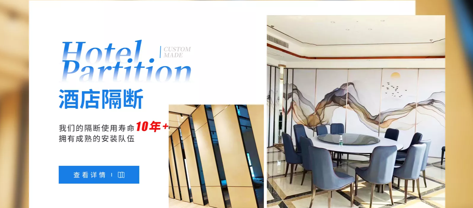 佛山市沃歐活動隔斷屏風有限公司是專業活動隔斷研發、設計、生產、銷售、安裝為一體的隔斷廠家、提供酒店隔斷,活動屏風,活動隔斷,移動隔斷整體解決方案。公司總部位于享有建材之都的佛山市南海區,工廠面積約1600平方米,是國內大型生產及安裝的廠家。旗下擁有多款活動隔斷屏風:65型、85型、100型、125型隔斷。