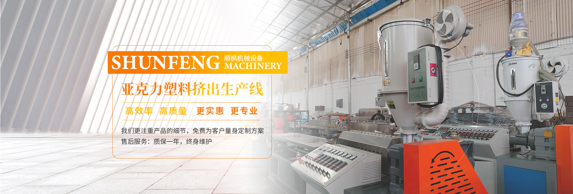 佛山市順楓機械設備有限公司總部2010成立,位于有黃飛鴻故鄉之稱的廣東佛山,毗鄰省城廣州市;交通發達,發貨便捷;公司致力于塑料擠出機械產品的制造與開發,并總結大量實踐經驗,吸收百家之精華,開發研制出各種新型穩定性產品,如 PMMA,PC,PP ,PVC,PS,PA,ABS管材擠出機,氣泡棒材擠出機,片材擠出機,異型材擠出機和各種生產線、塑料擠出機、亞克力擠出機、皮帶牽引機 pc穿線管設備 管材擠出生產線。公司以“品 質取信用戶,服務贏得市場”為經營宗旨,在提供質優的產品同時,不斷開發新產品。現產品遠銷海外,得到海外客戶認可與肯定。歡迎各業界人士和新老客戶前來參觀洽談,你們的支持是我們的動力,讓我們攜手共創美好明天。
