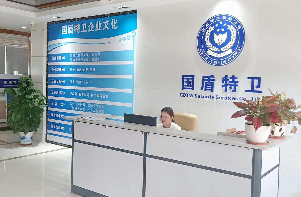 廣東國盾特衛保安集團有限公司成立于2014年,注冊資金萬元人民幣,具備《保安服務許可證》、《保安培訓許可證》、《勞務派遣經營許可證》、《技術防范系統設計、施工、維修資格》等行政準入資質,依法開展保安服務、物業管理、勞務派遣、技術防范、風險評估、中大型活動臨時護衛、保安職業教育培訓等綜合服務。